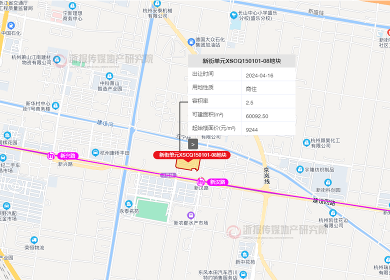 | 挂牌信息 | 城市 | 杭州 | 城区 | 萧山区 | 地块四至 | 东至规划高新五路,南至建设四路,西至规划新农路,北至规划新盛路 | ||